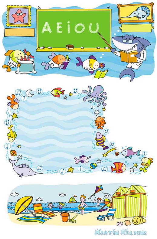 Varios bichos acuáticos para un libro de preescolares publicado por MacMillan.