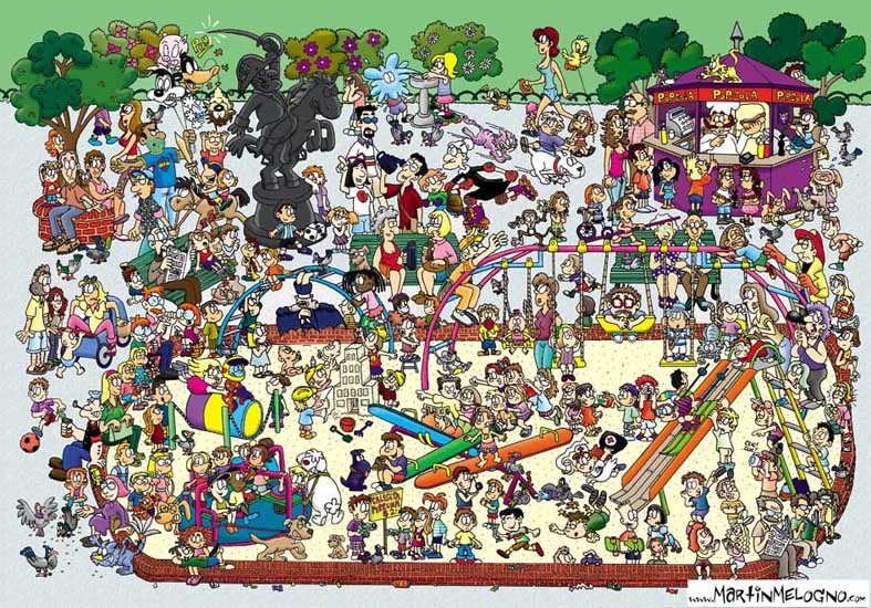 Una lámina bien grande llena de situaciones y personajes para buscar y buscar. Para ver todas las láminas posteadas, clickear acá.